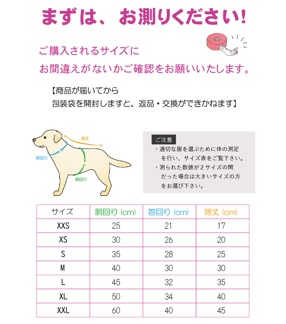 サイズ:XXS・XS・S・M・L・XL・XXL