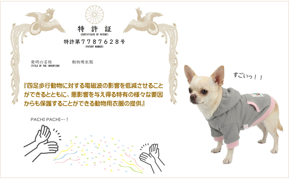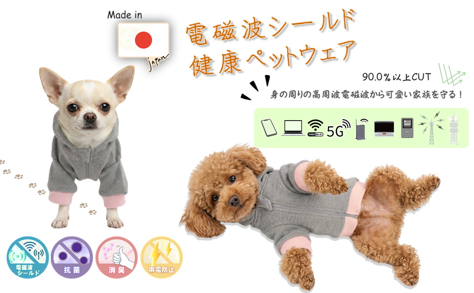 マモデンパの特殊生地 ペットウェア!着用するだけで高周波電磁波の90.0%以上を遮蔽(しゃへい)