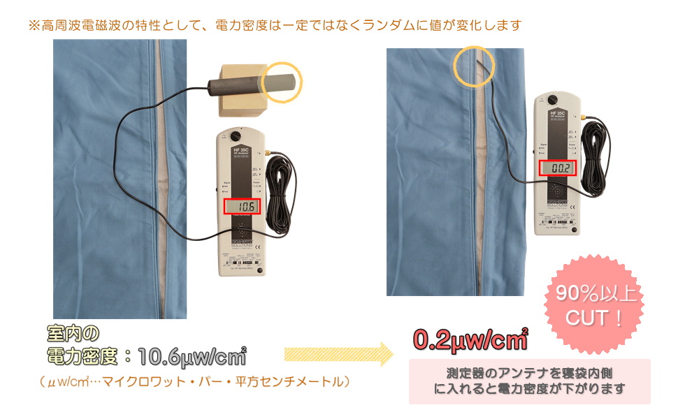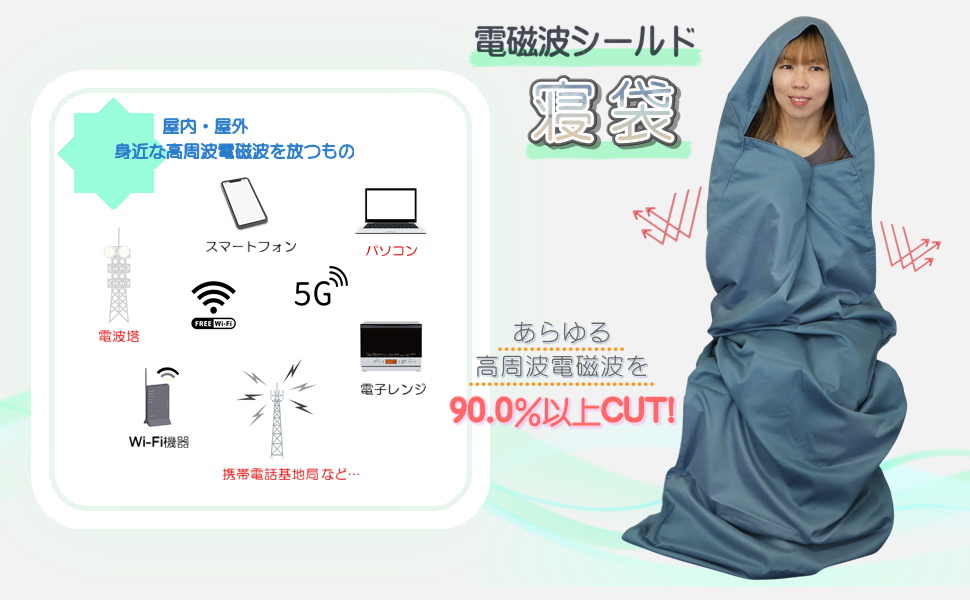 マモデンパの特殊生地 寝袋は高周波電磁波の90.0%以上を遮蔽(しゃへい)