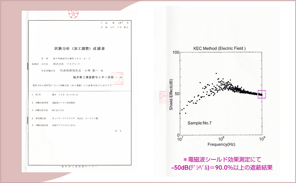 電磁波遮蔽率:90.0%以上=20〜40dB(10MHz〜10GHz)