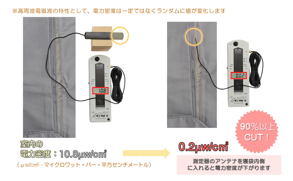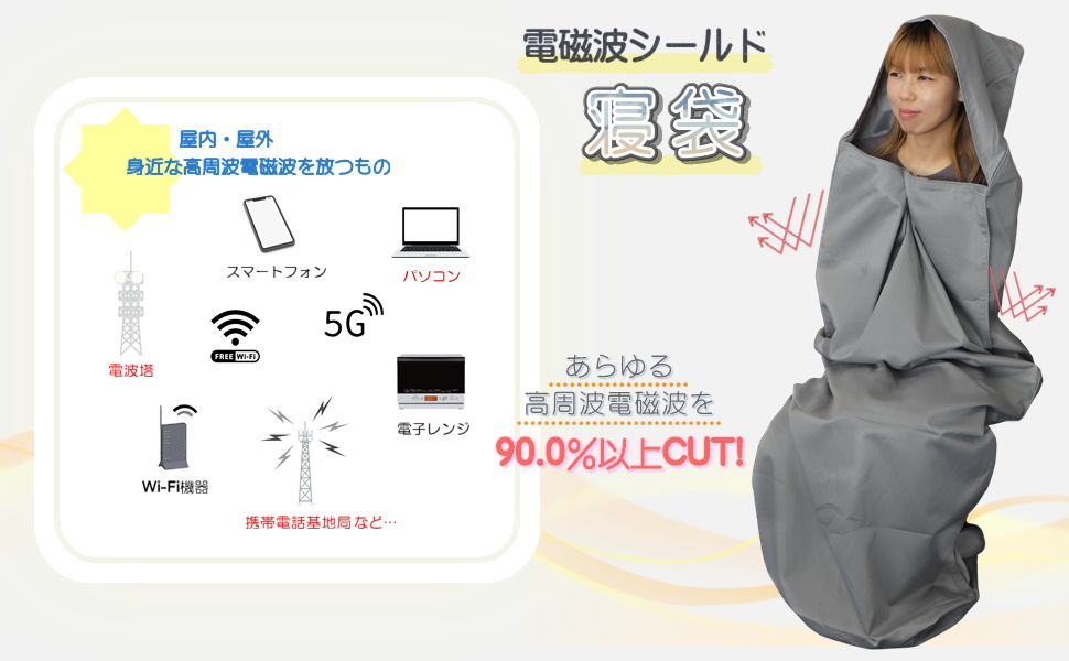 マモデンパの特殊生地 寝袋は高周波電磁波の90.0%以上を遮蔽(しゃへい)