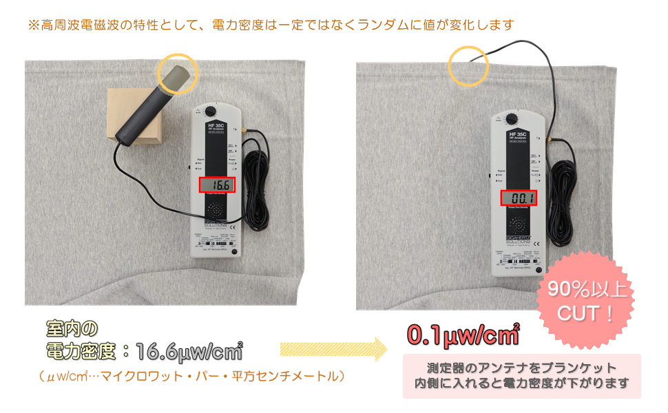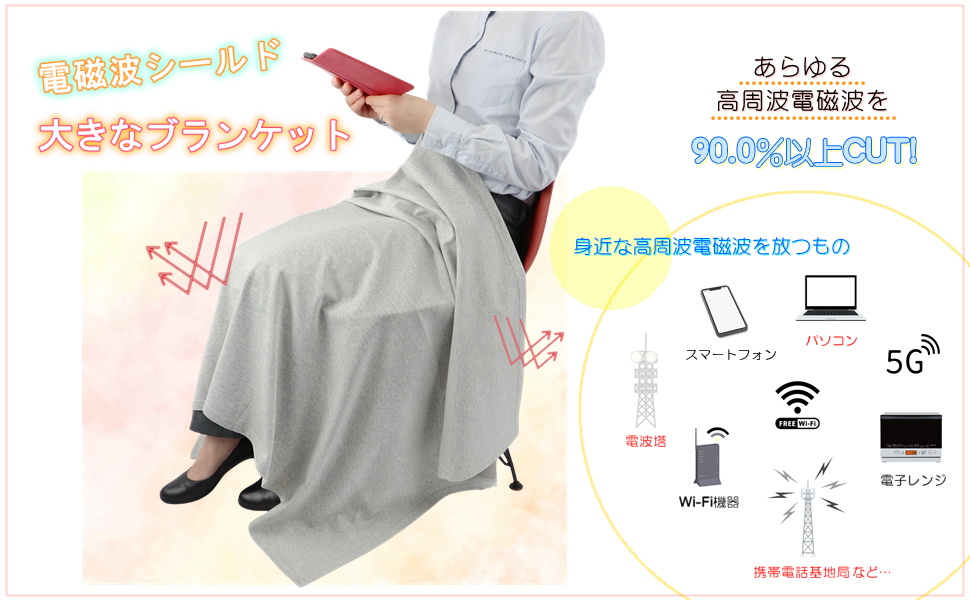 マモデンパの特殊生地ブランケットは高周波電磁波の90.0%以上を遮蔽(しゃへい)